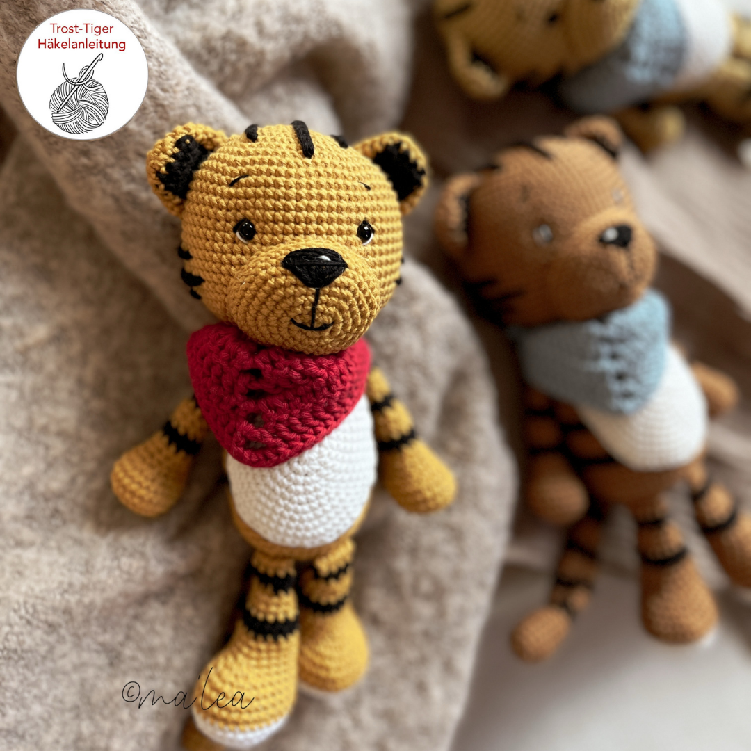 Häkelanleitungen: Den Trost-Tiger gibt es nun auch in gehäkelter Form und ist in Zusammenarbeit mit dem Label ma'lea entstanden.
