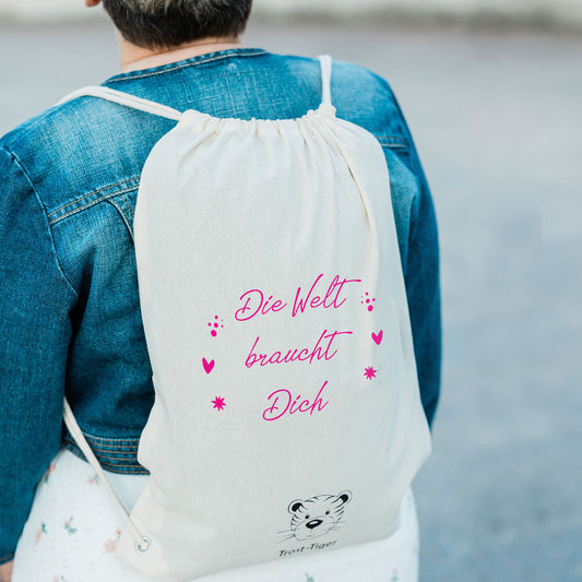Wir haben die perfekten Rucksäcke oder Geschenkverpackungen, um jemandem eine Freude zu bereiten. Natürlich können sie individuell beschriftet werden. Und nicht zuletzt fühlen sich unsere Trost-Tiger Kuscheltiere in den Stoffbeuteln auch richtig wohl.