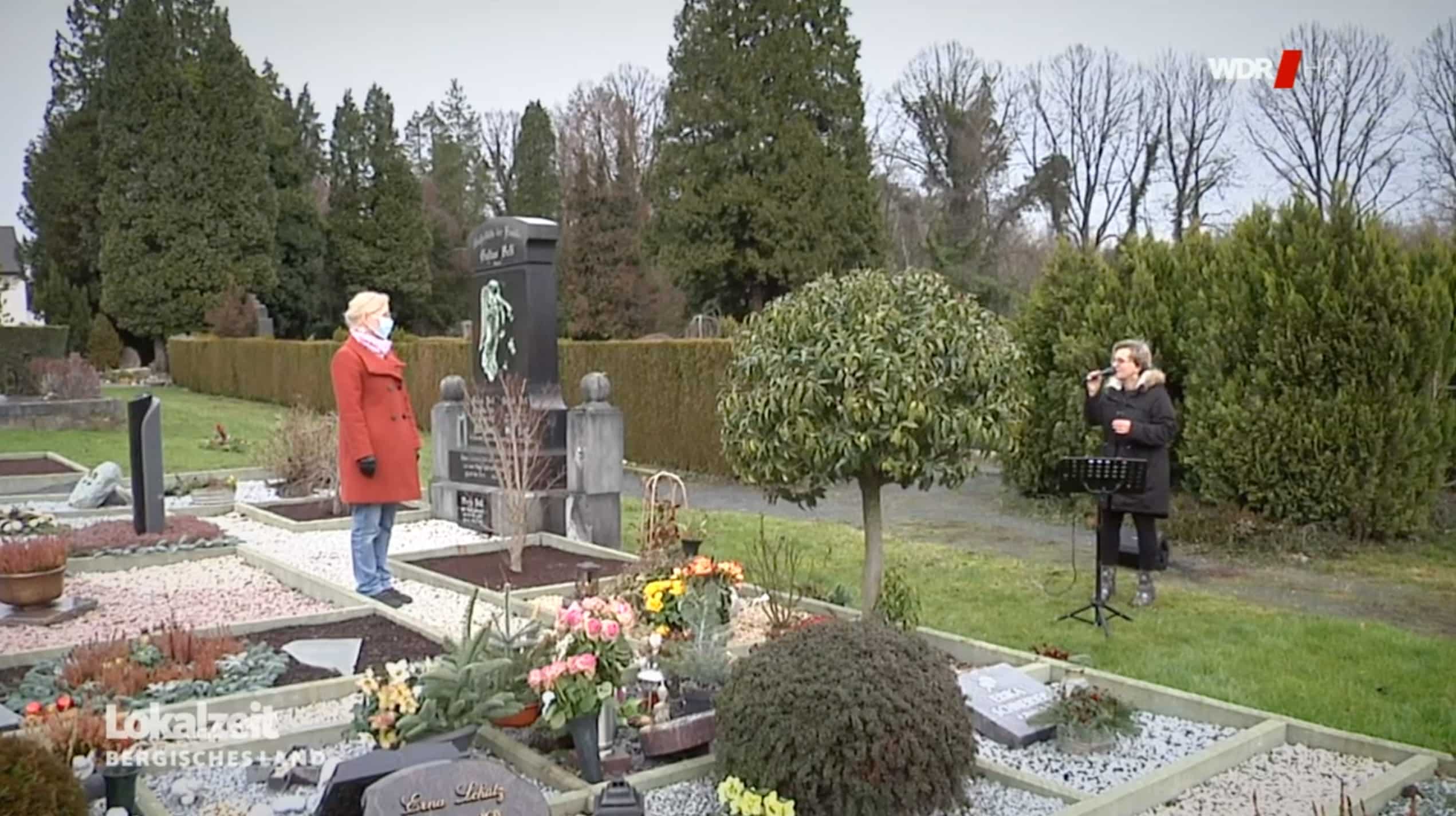 Essen – Petra Berghaus steht vor dem Grab ihrer Eltern und singt. Es ist ein grauer April-Tag in Essen-Kettwig auf dem kleinen, fast menschenleeren Friedhof an der Brederbachstraße. -