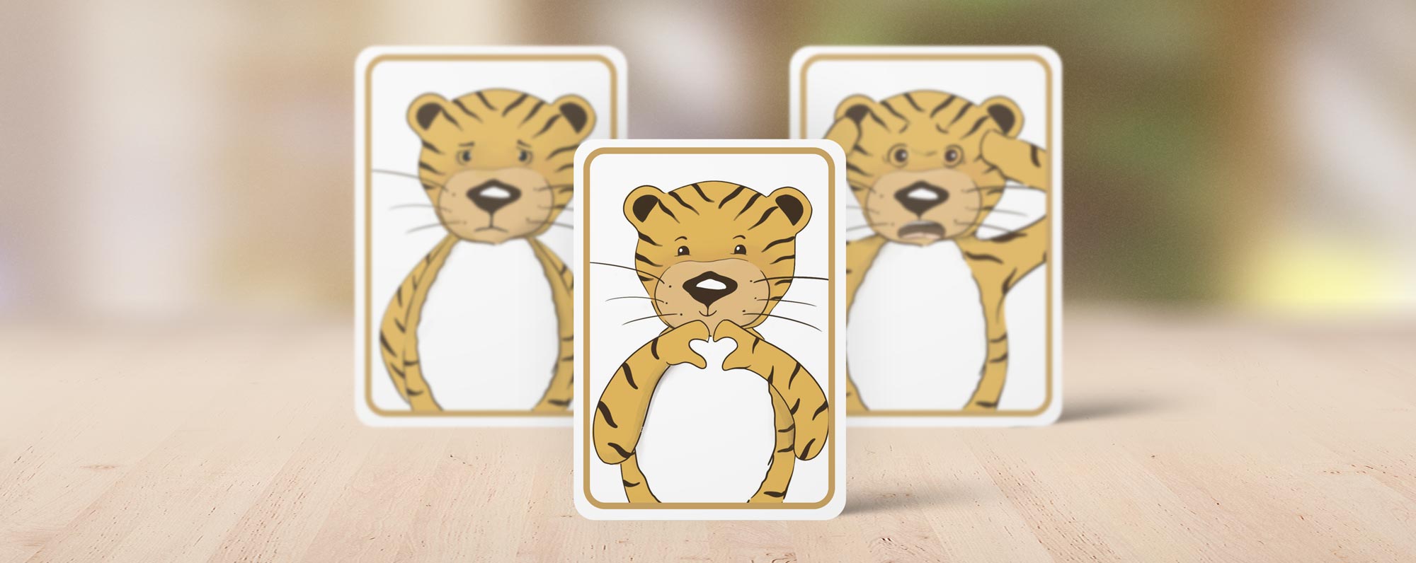 Die Konzentration auf den Gesichtsausdruck und Körperhaltung bei den Trost-Tiger Bildern kann für Menschen mit Autismus ein wichtiges Hilfsmittel sein, unterschiedliche Gefühle einordnen zu lernen.