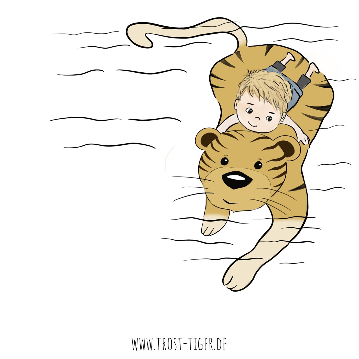 „Das verstehe ich. Aber gemeinsam schaffen wir es. Ich trage Dich über den Fluss“, sagte der Trost-Tiger.