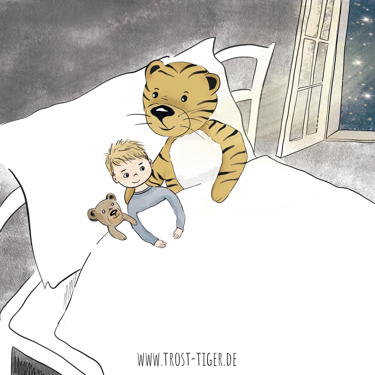 "Vermissen tut ganz schön weh! Aber jede Erinnerung wird ein kleiner Stern am Himmel, der Dich wärmt und tröstet", flüsterte der Trost-Tiger.
