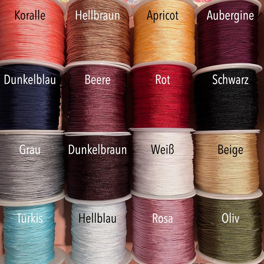Bei dem Armband wurden 925er Sterlingsilber Anhänger aus europäischer Herstellung verarbeitet. Das Nylonband ist in vielen Farben lieferbar. Durch den Makramee-Schiebeverschluss passt das Armband nahezu an jedes Handgelenk.