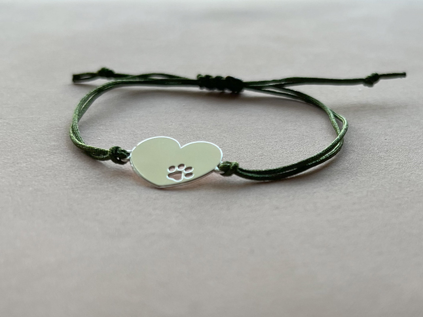 Material: Postkartenkarton, Nylonband, Anhänger "Pfote im Herz" 925er Sterlingsilber
